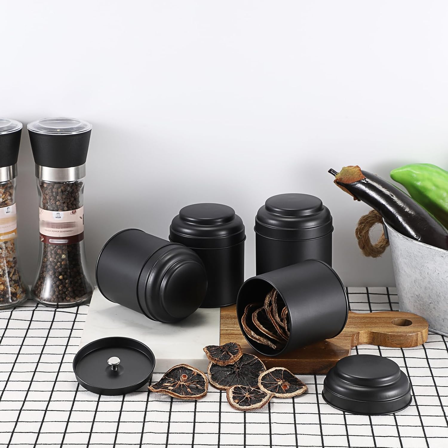 Set 6 borcane metalice etanșe IGNPION de 237 ml, cu capac dublu pentru prospețime maximă. Perfecte pentru ceai, cafea, condimente și organizarea bucătăriei. Design compact, rezistent și ideal pentru rafturi sau coffee corner.