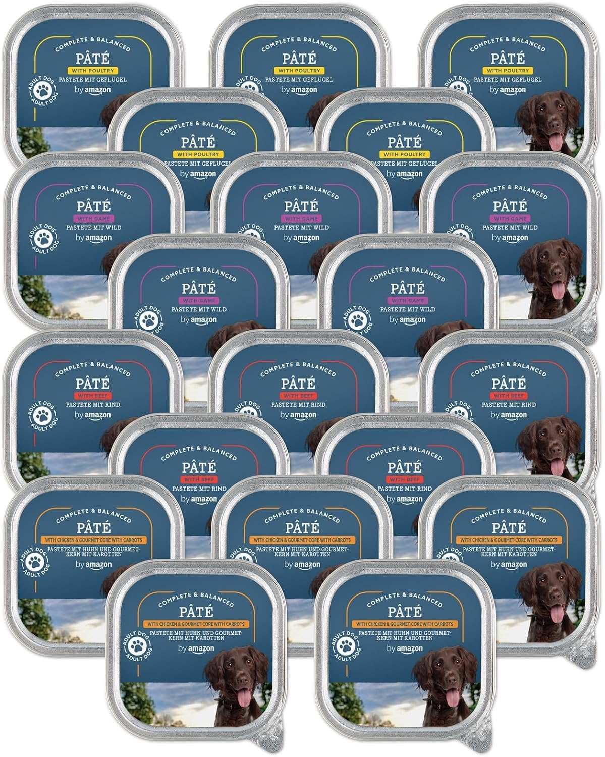 by Amazon – hrană umedă pentru câini, 20×300g, fost Lifelong. Rețetă identică, fără aditivi artificiali, cu vitamine esențiale și proteine de calitate. Sortimente variate în pateu.