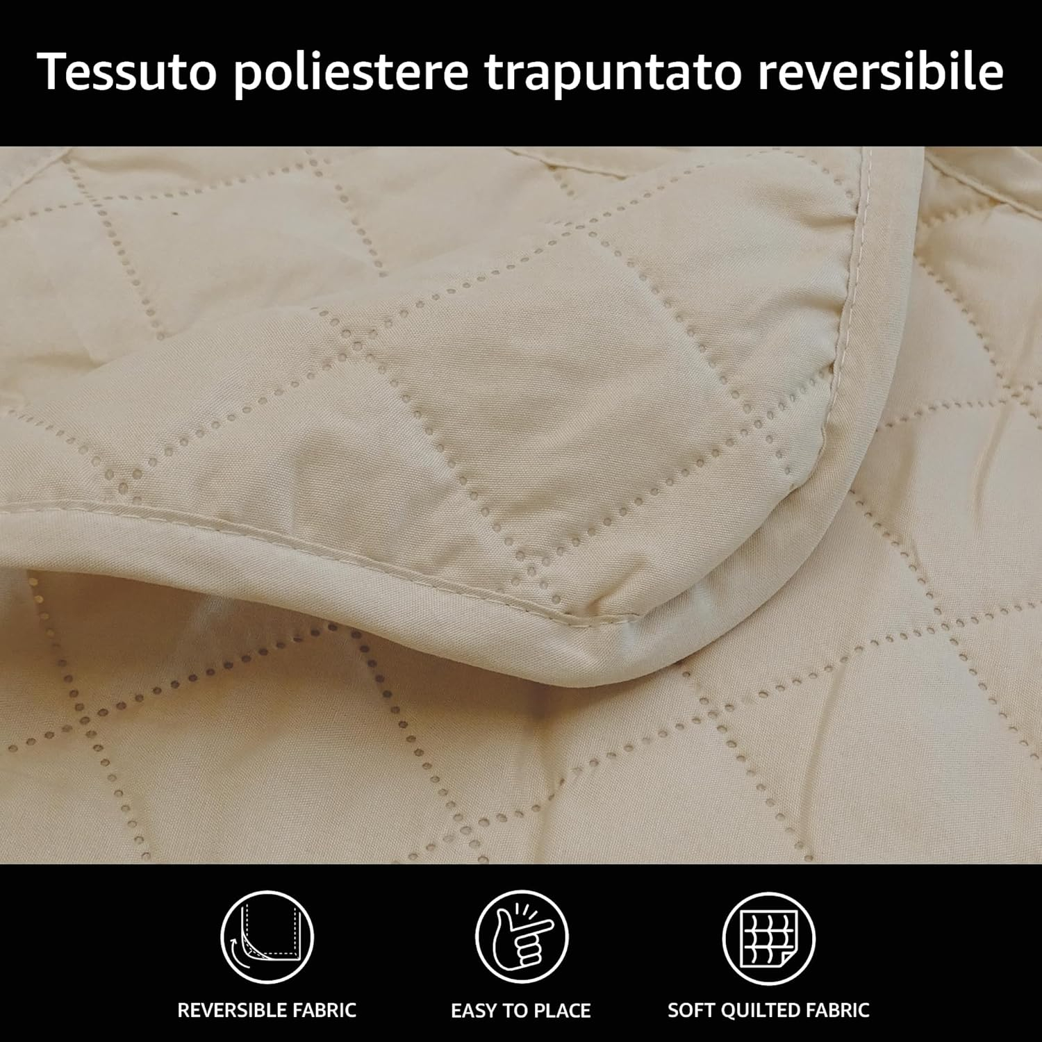 Husă matlasată pentru canapea 2 locuri Comart Majestic, reversibilă, anti-zgârieturi și antiderapantă. Protejează împotriva petelor, părului și uzurii. Moale, respirabilă, ușor de spălat. Culoare crem.