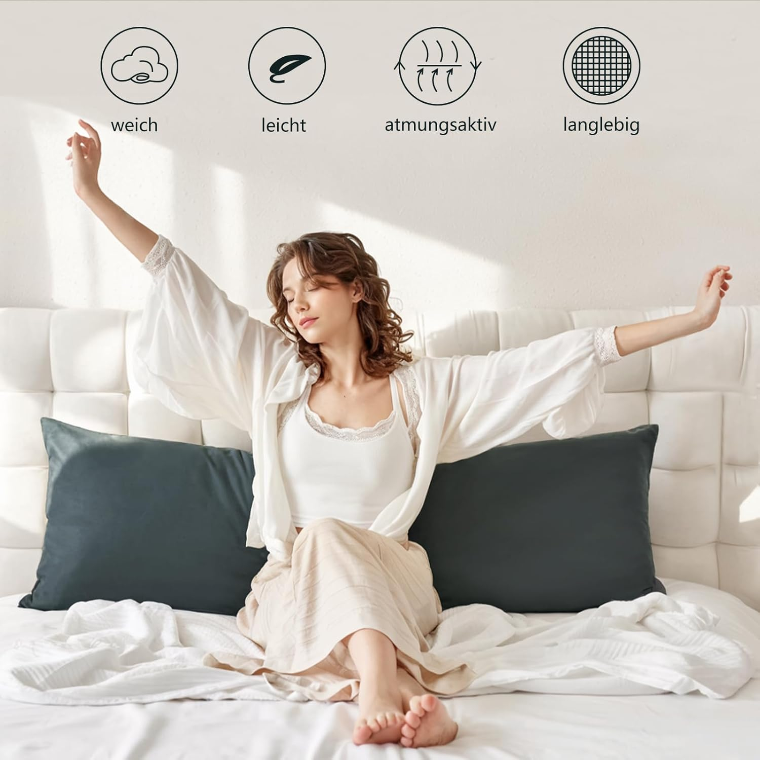 Set 2 fețe de pernă 40×145 cm, microfibră moale și respirabilă, culoare gri antracit. Huse durabile, cu fermoar ascuns, ideale pentru perne de corp și somn lateral. Certificate OEKO-TEX.